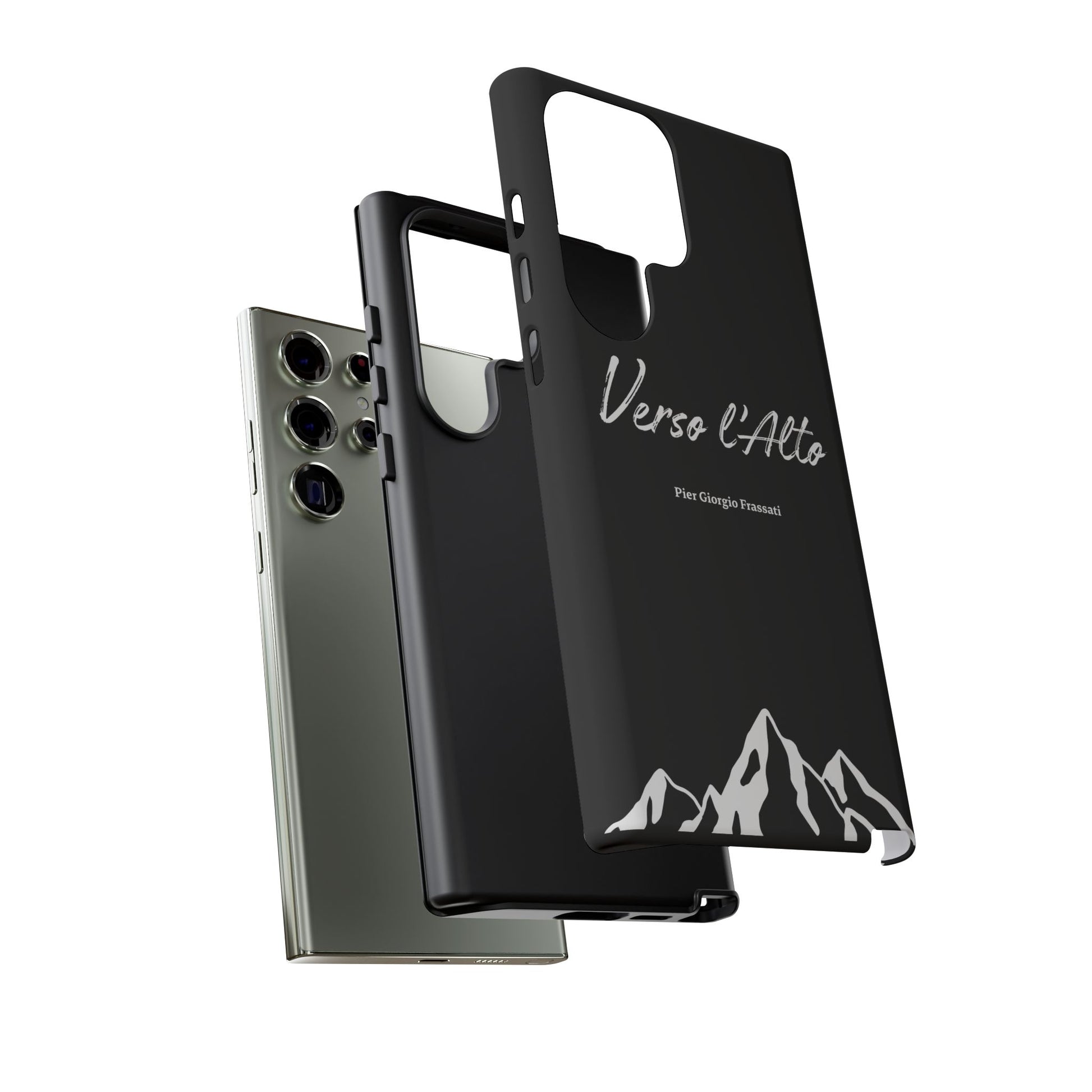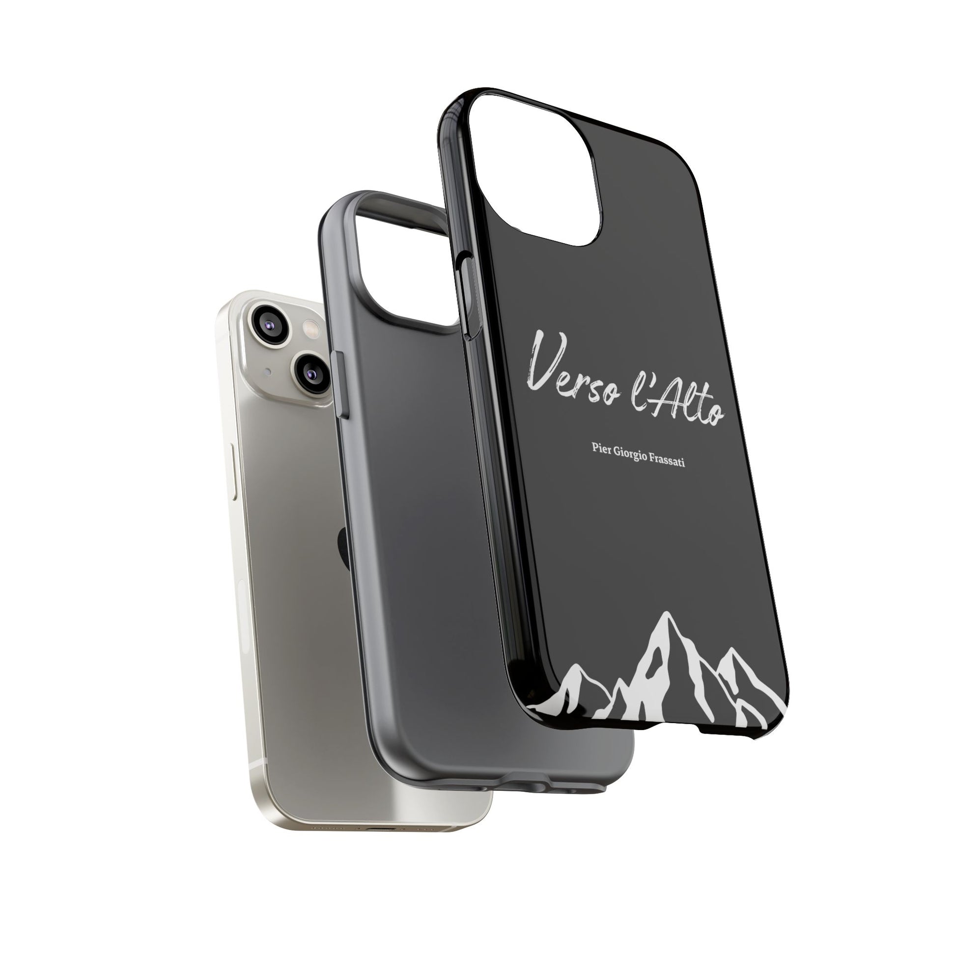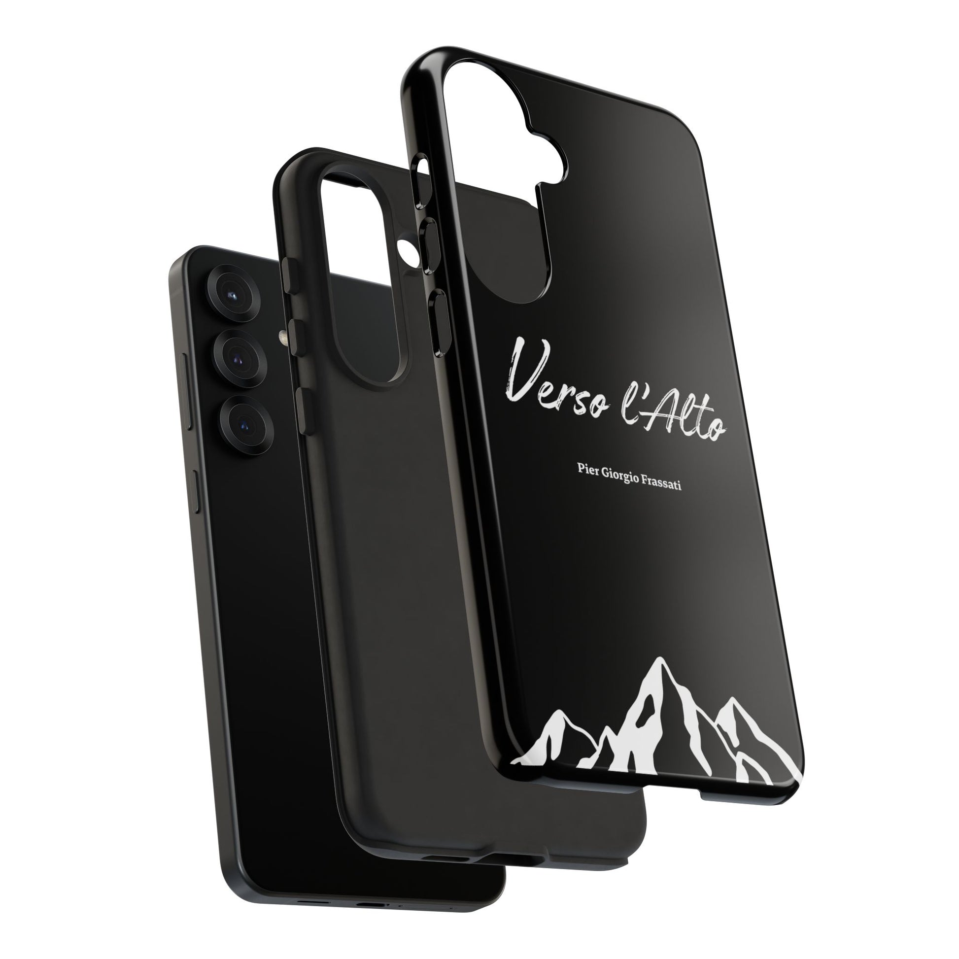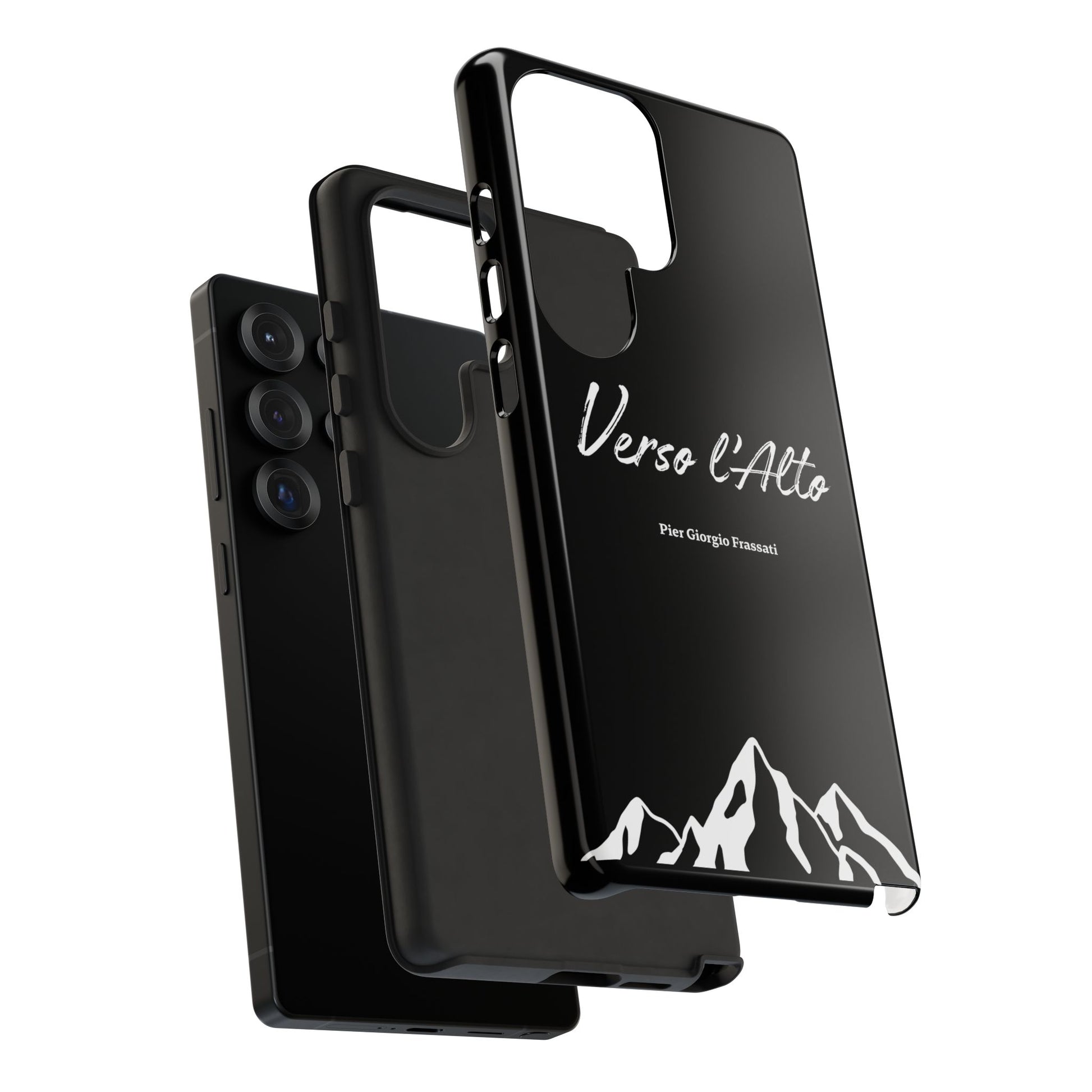Protect your phone with elegance thanks to this case inspired by Pier Giorgio Frassati's motto, "Verso l'Alto" (To the Heights). Adorned with a beautiful mountain design and this emblematic quote from the saint Italian mountaineer, this case combines robust protection with spiritual inspiration.
