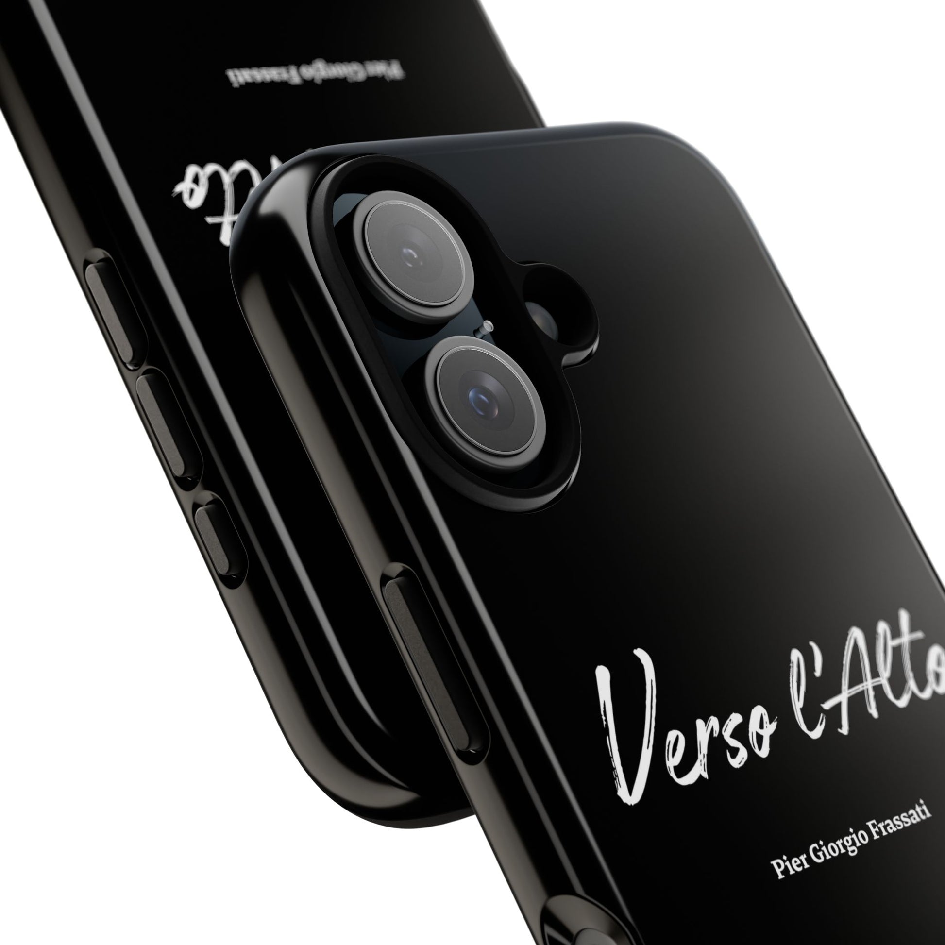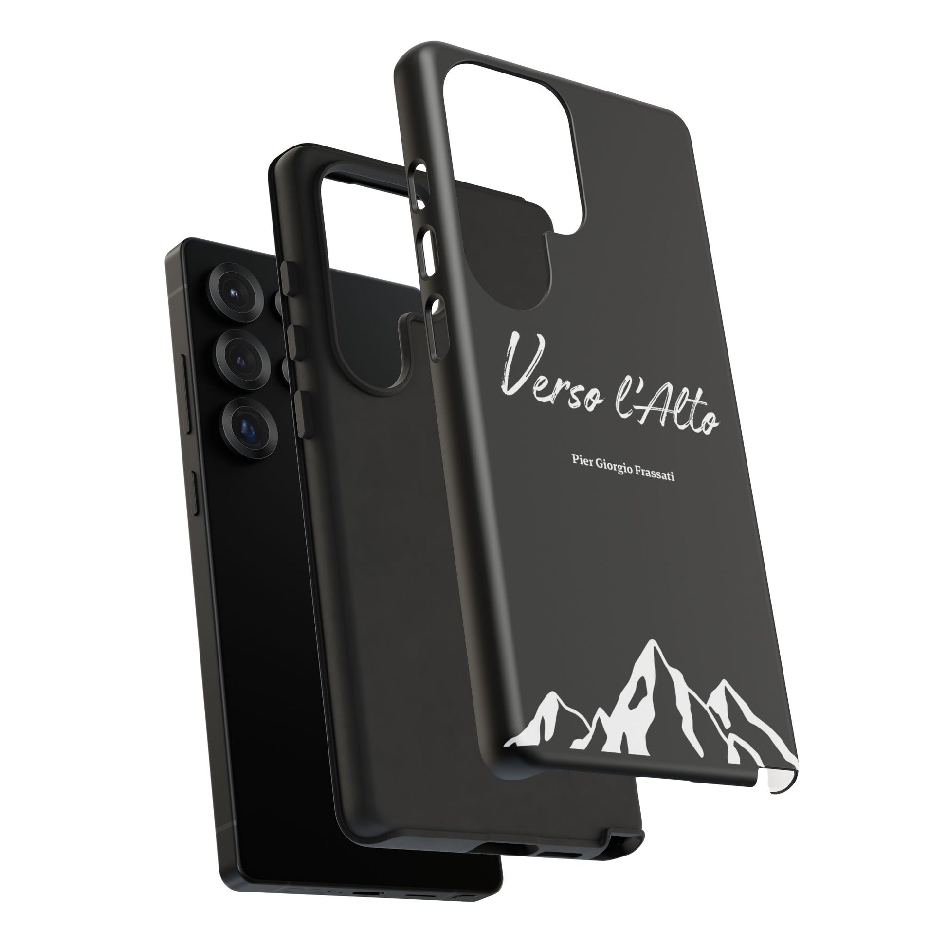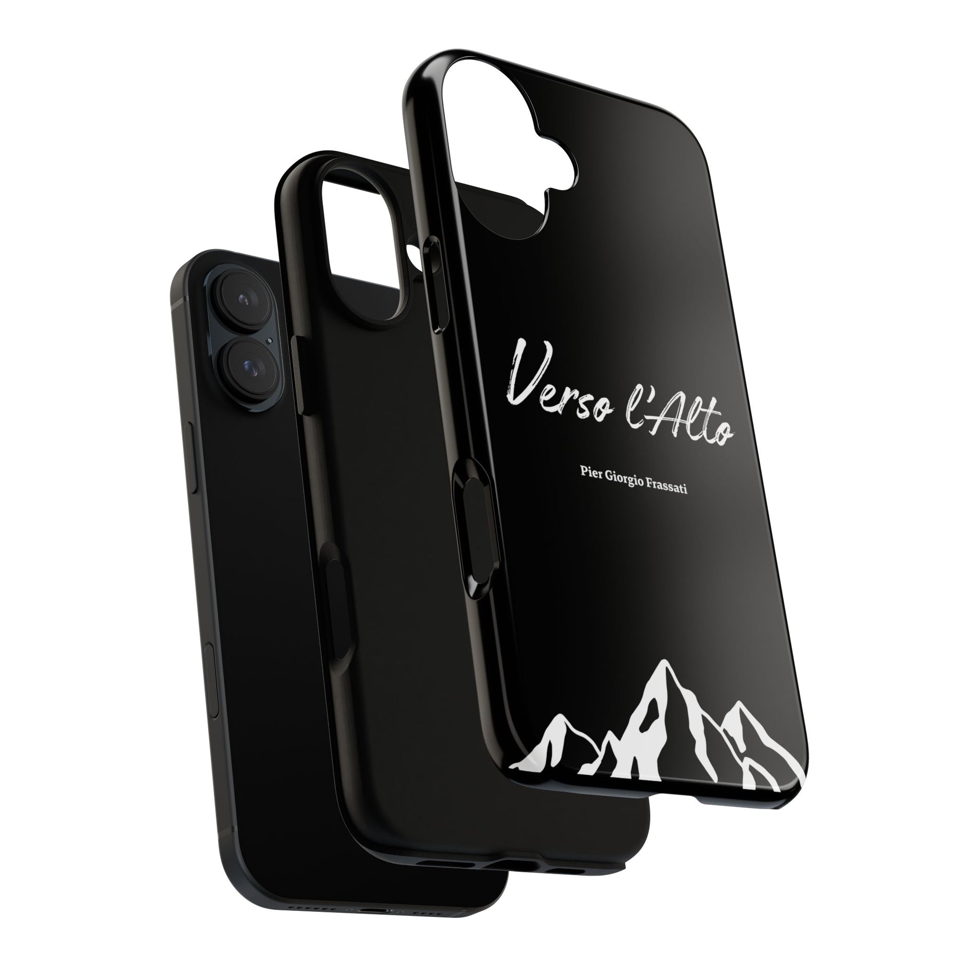 Protect your phone with elegance thanks to this case inspired by Pier Giorgio Frassati's motto, "Verso l'Alto" (To the Heights). Adorned with a beautiful mountain design and this emblematic quote from the saint Italian mountaineer, this case combines robust protection with spiritual inspiration.