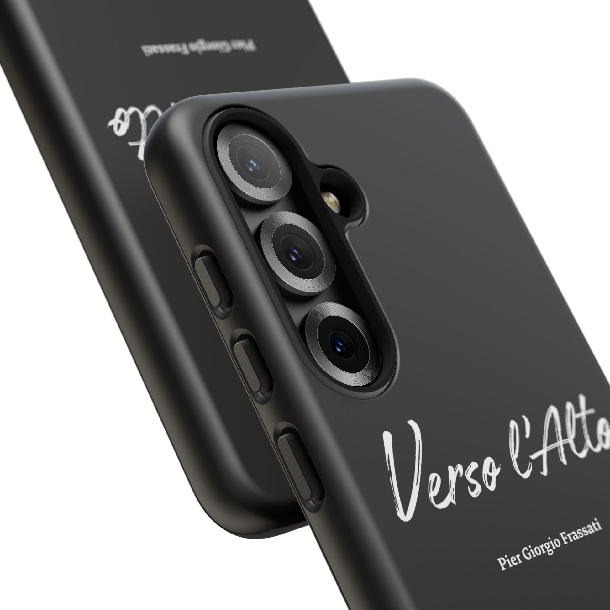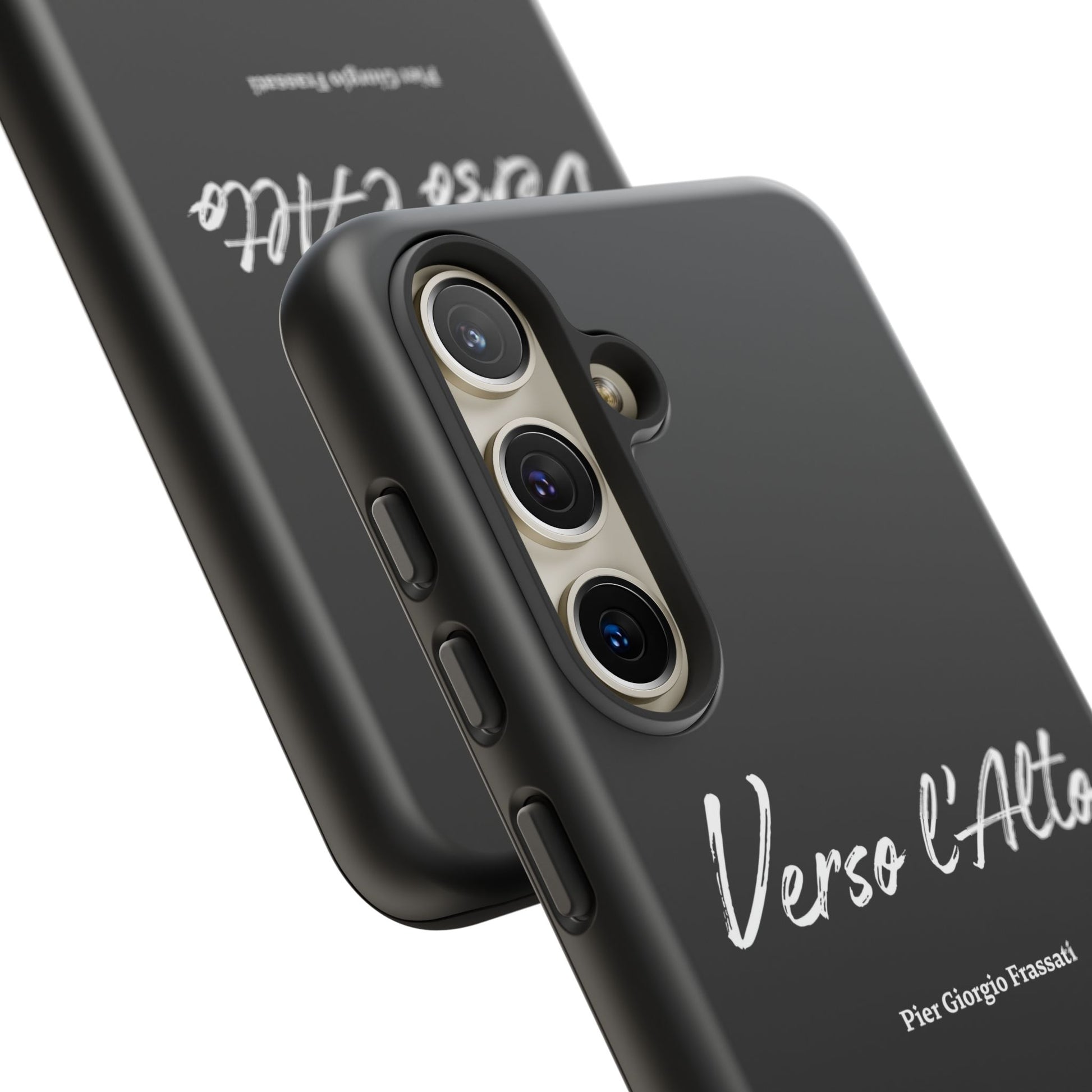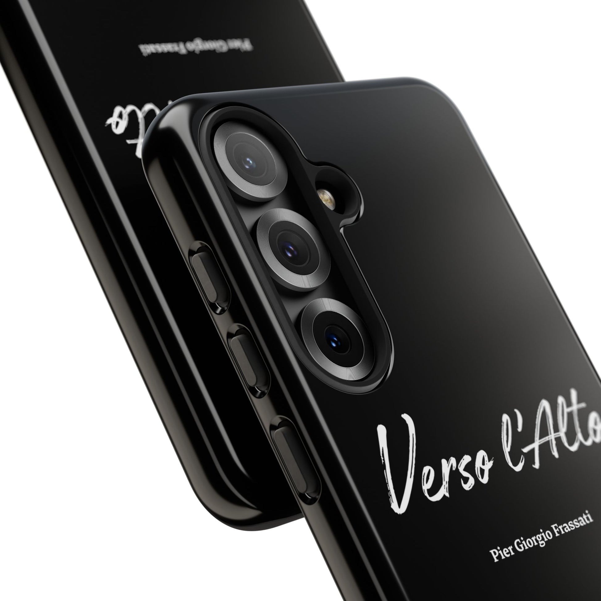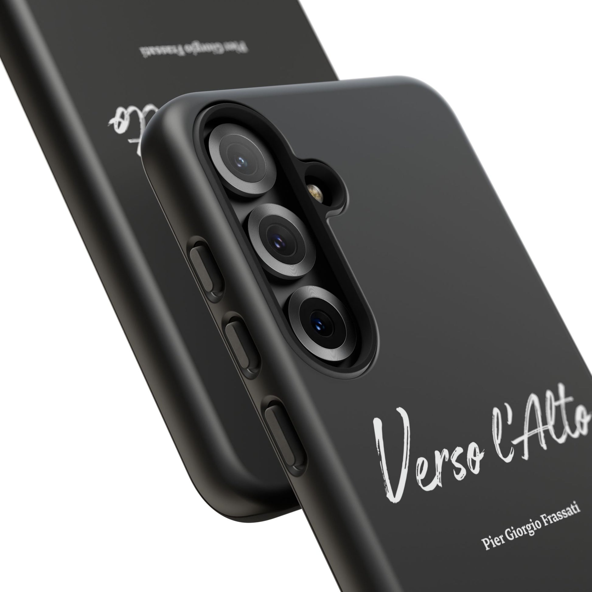 Protect your phone with elegance thanks to this case inspired by Pier Giorgio Frassati's motto, "Verso l'Alto" (To the Heights). Adorned with a beautiful mountain design and this emblematic quote from the saint Italian mountaineer, this case combines robust protection with spiritual inspiration.