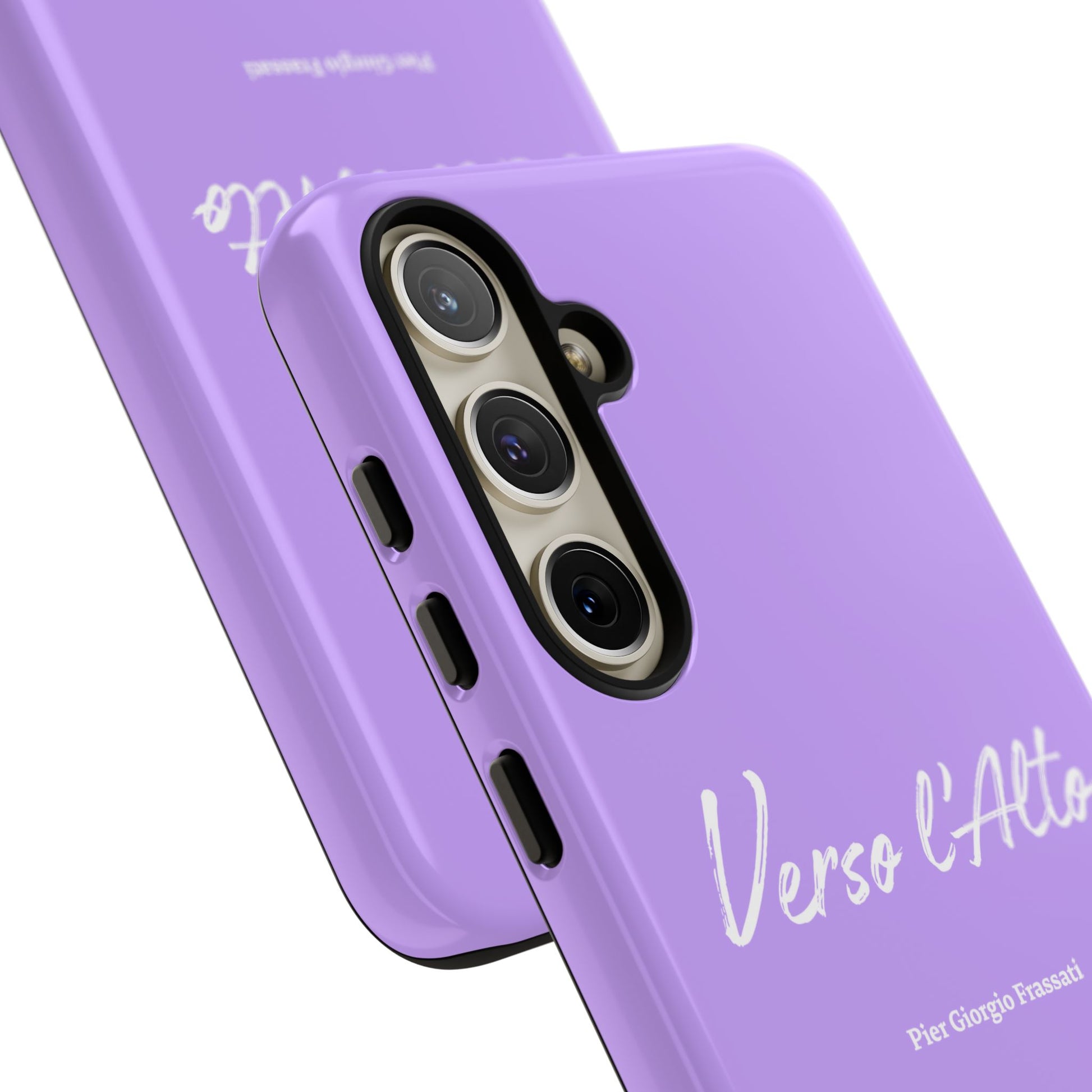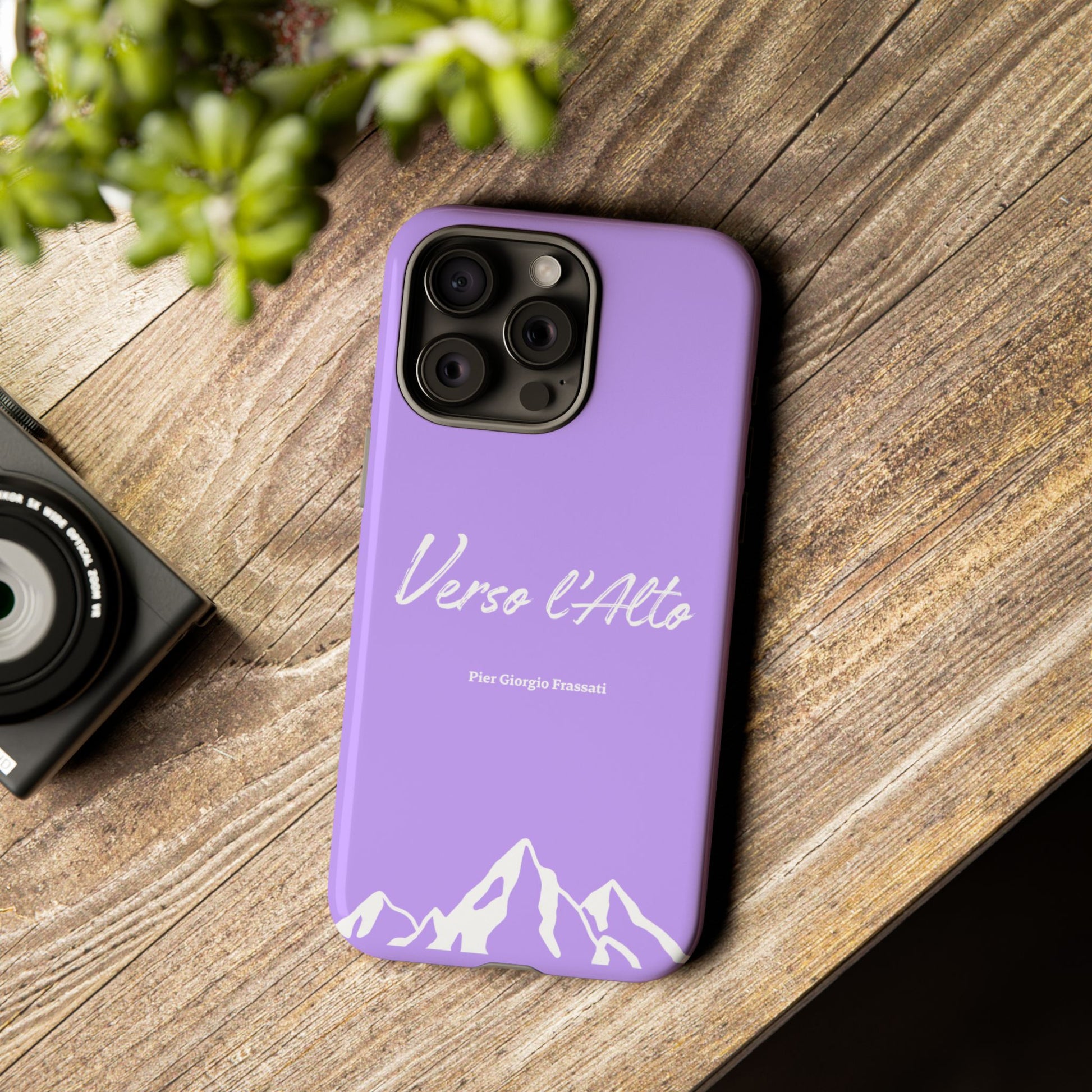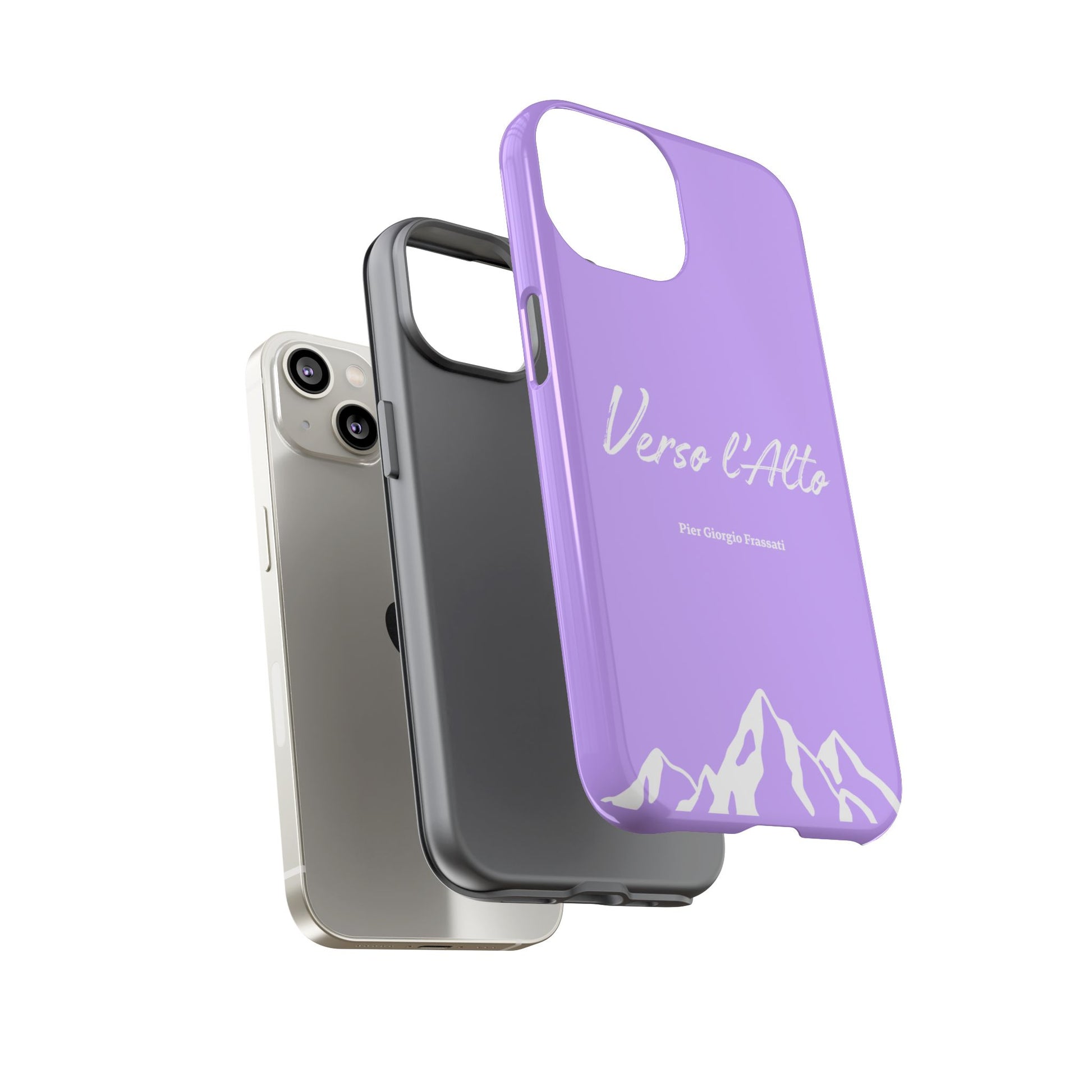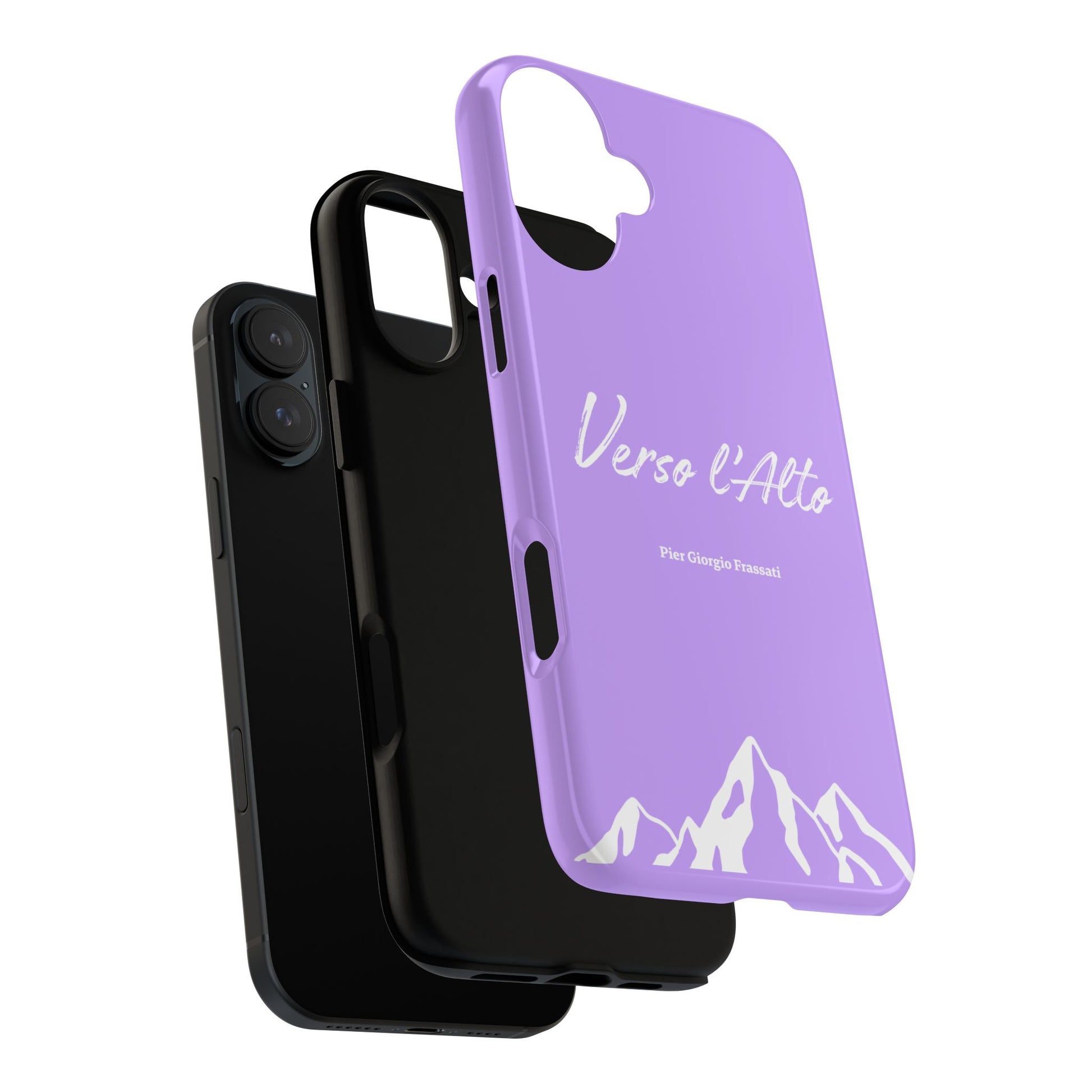 Protect your phone with elegance thanks to this case inspired by Pier Giorgio Frassati's motto, "Verso l'Alto" (To the Heights). Adorned with a beautiful mountain design and this emblematic quote from the saint Italian mountaineer, this case combines robust protection with spiritual inspiration.