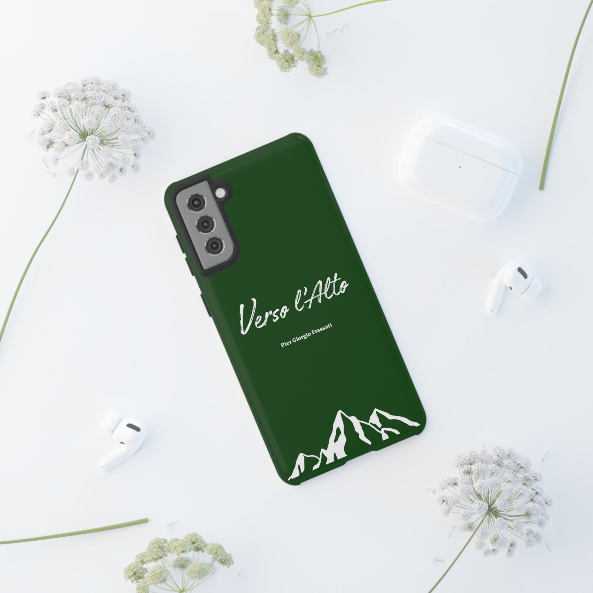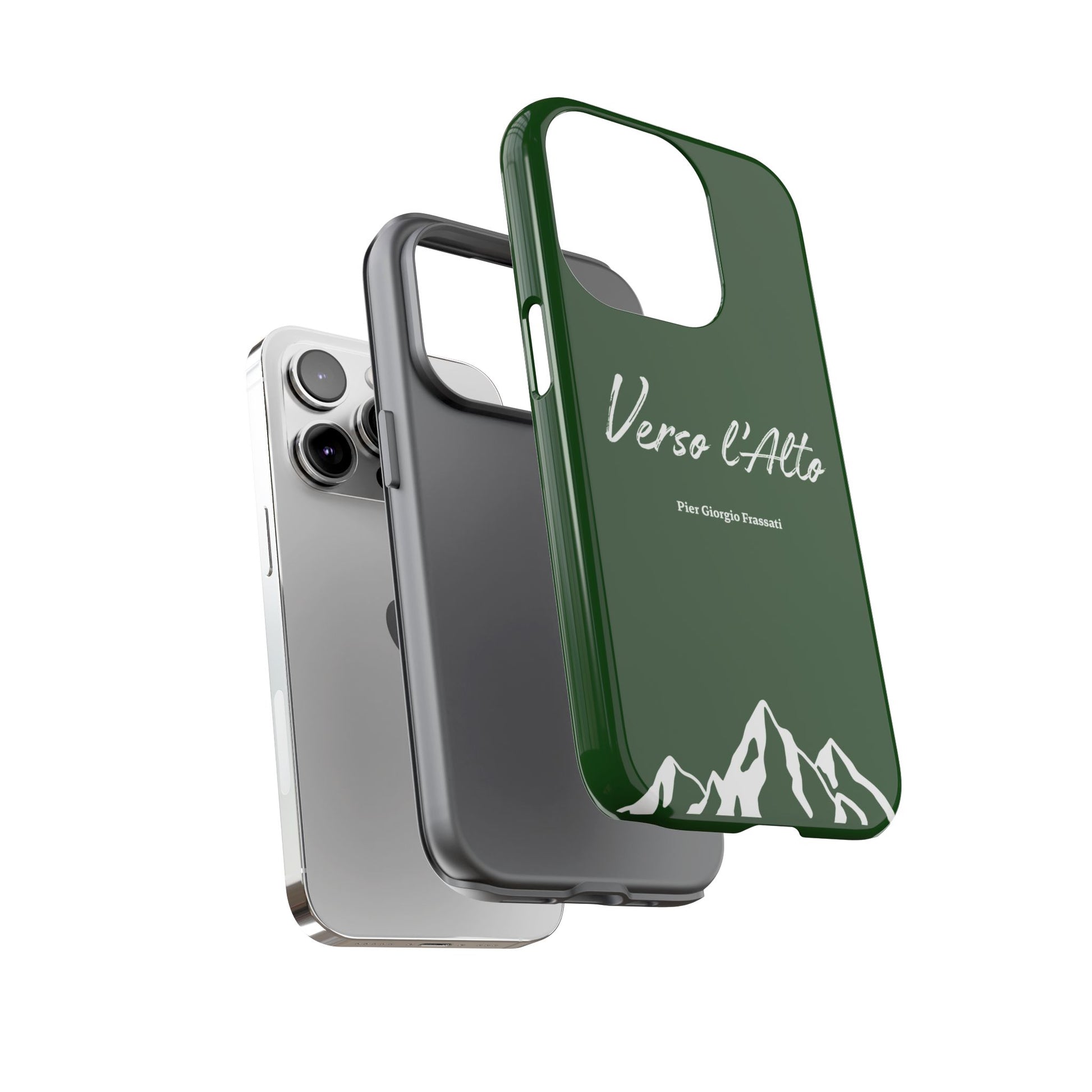 Protect your phone with elegance thanks to this case inspired by Pier Giorgio Frassati's motto, "Verso l'Alto" (To the Heights). Adorned with a beautiful mountain design and this emblematic quote from the saint Italian mountaineer, this case combines robust protection with spiritual inspiration.