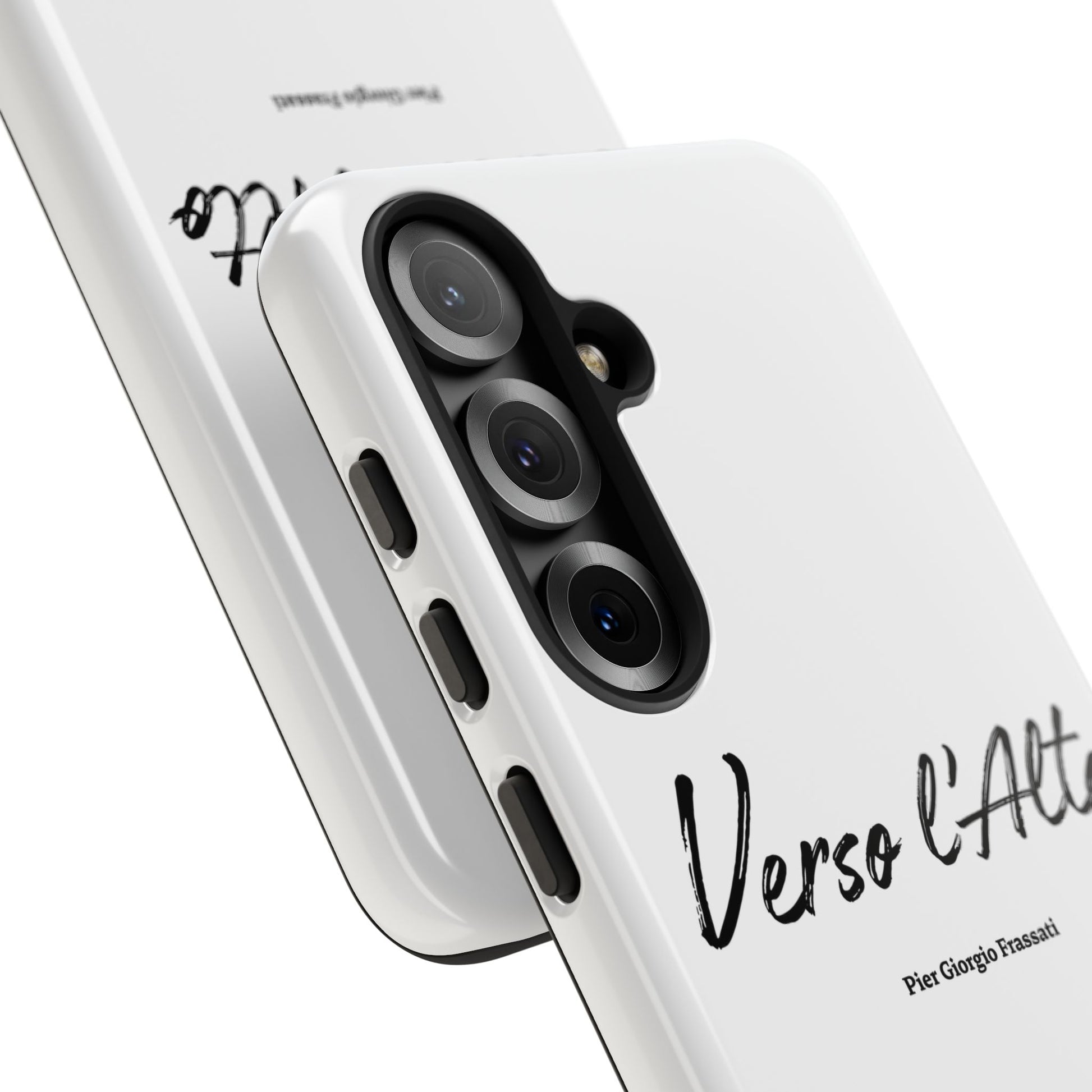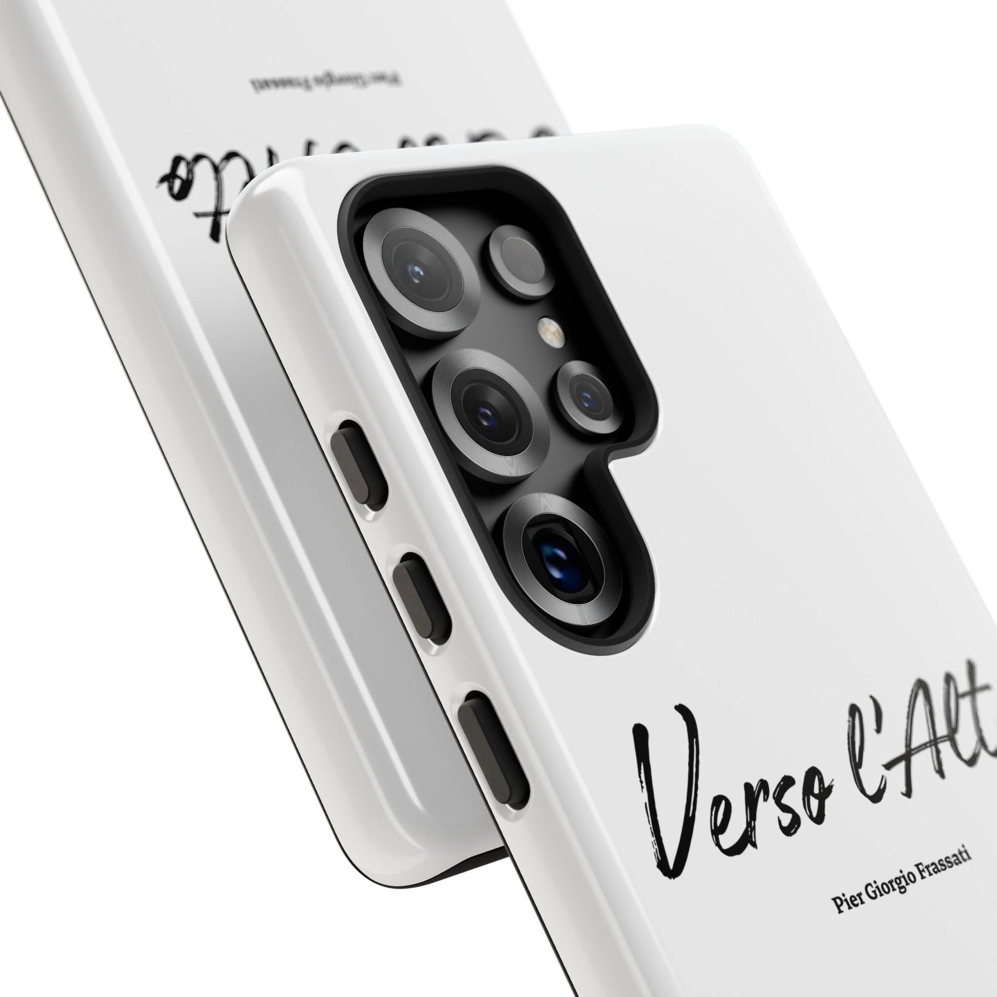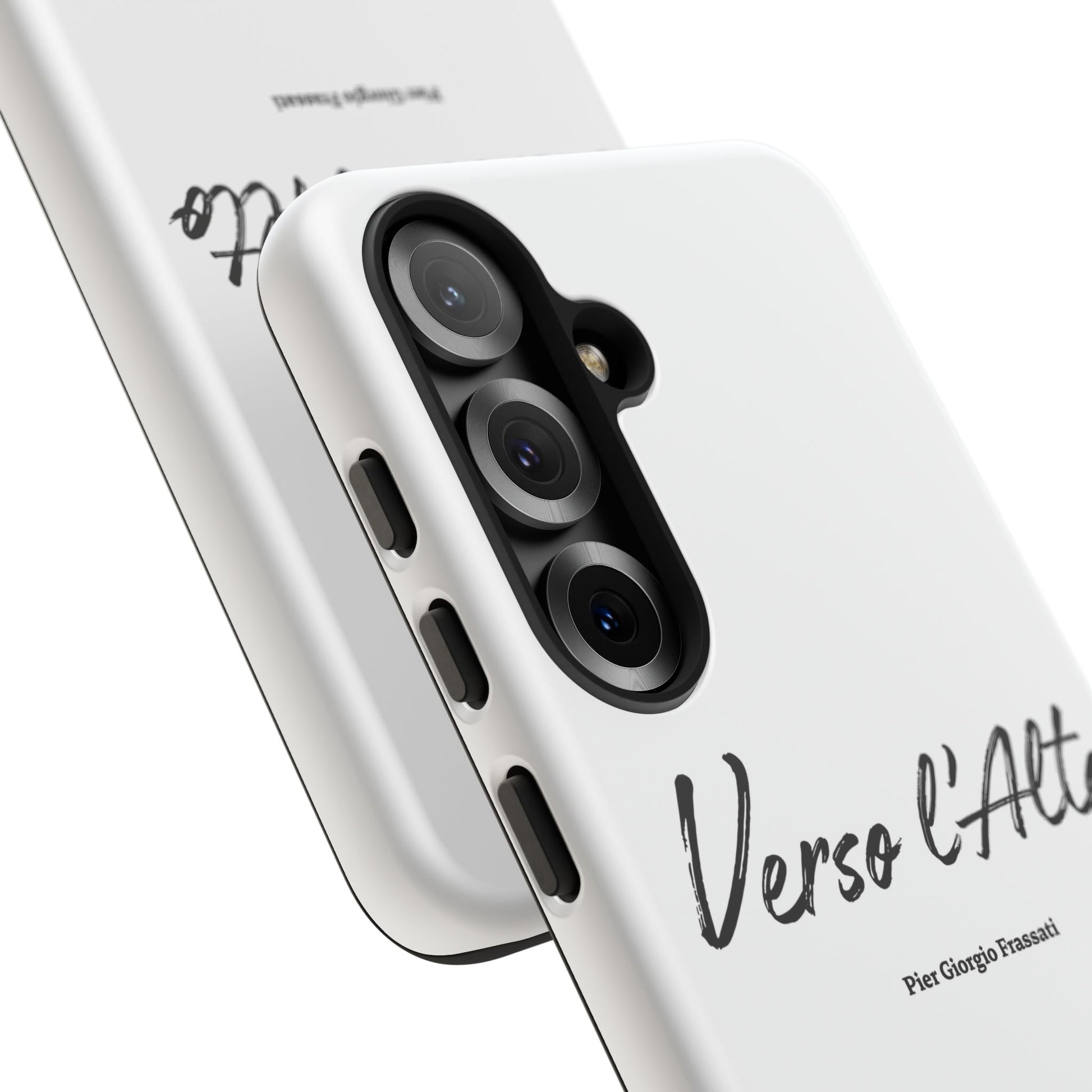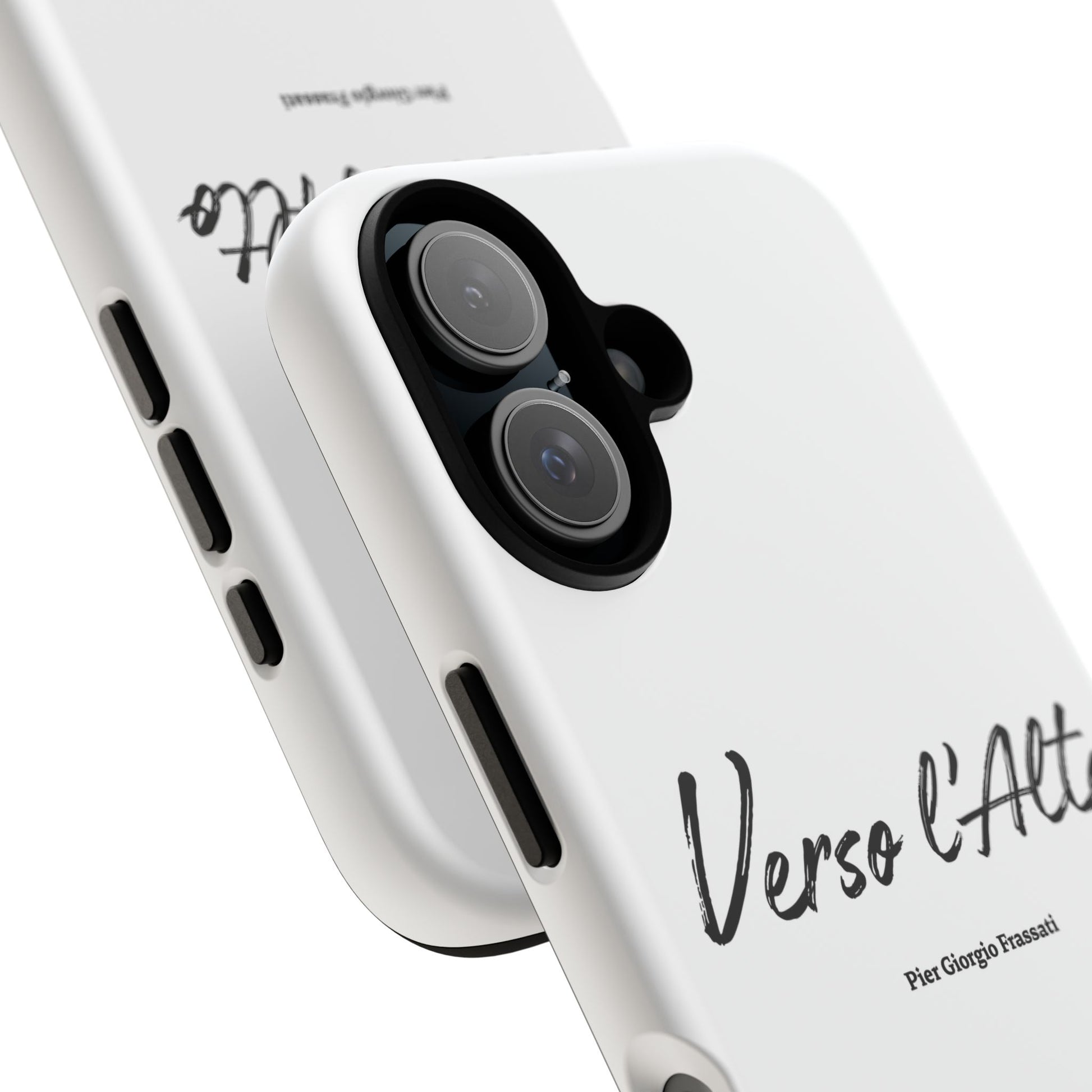 Protect your phone with elegance thanks to this case inspired by Pier Giorgio Frassati's motto, "Verso l'Alto" (To the Heights). Adorned with a beautiful mountain design and this emblematic quote from the saint Italian mountaineer, this case combines robust protection with spiritual inspiration.